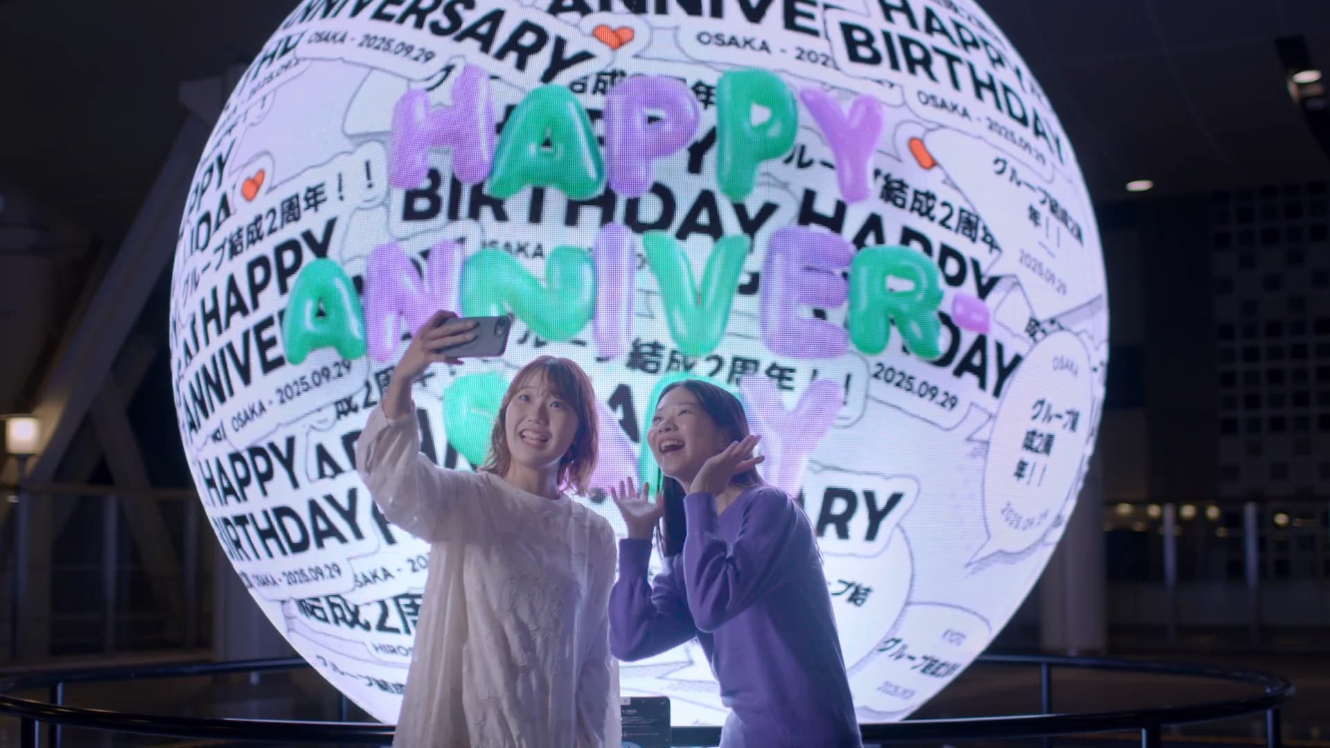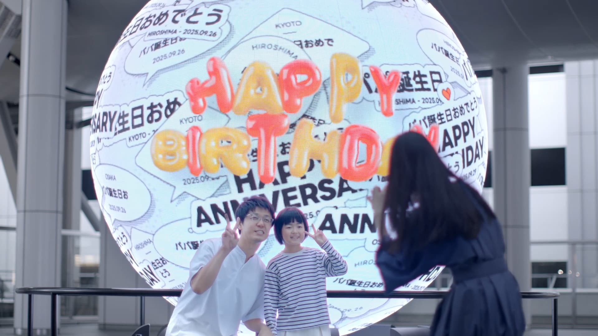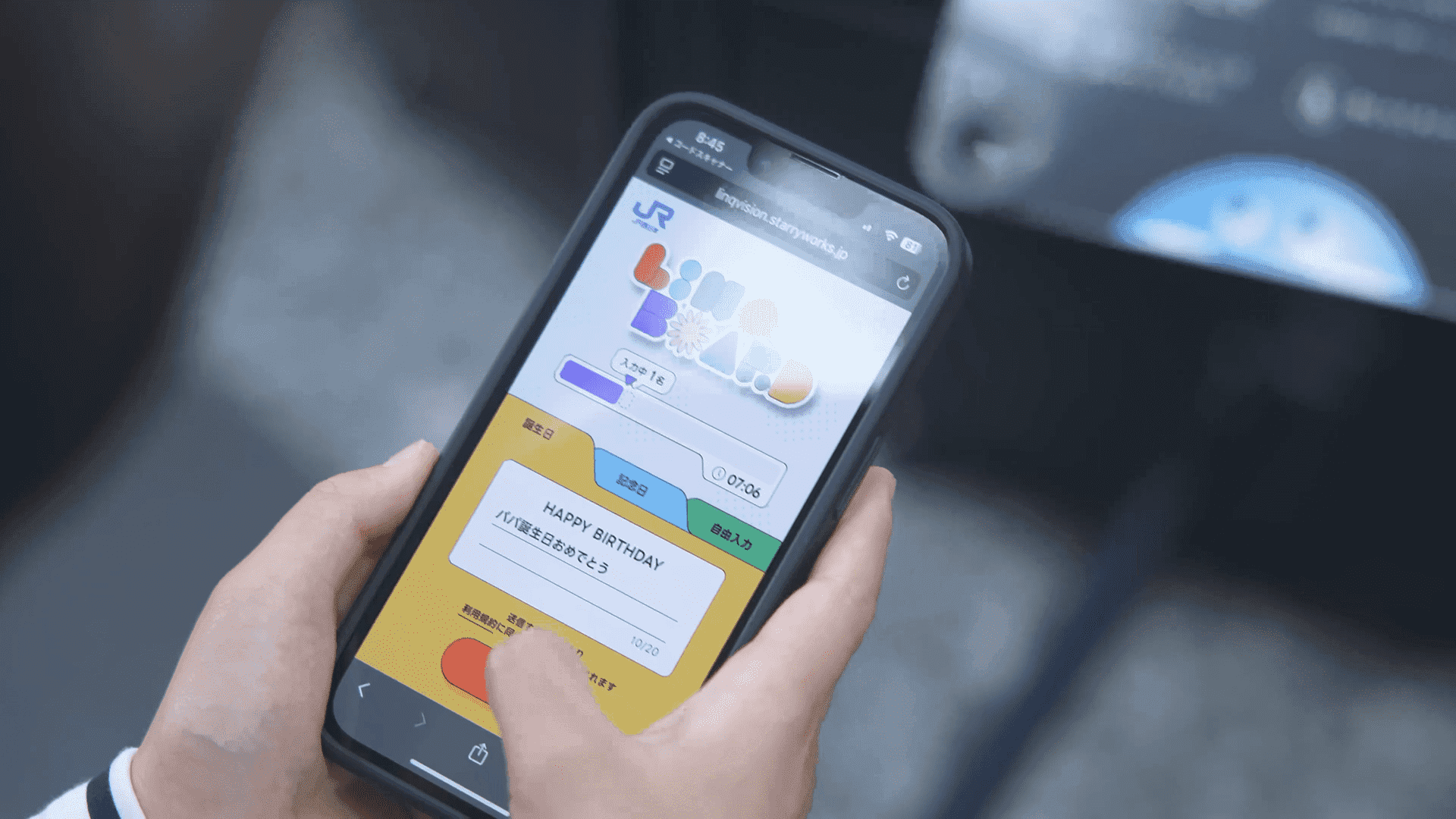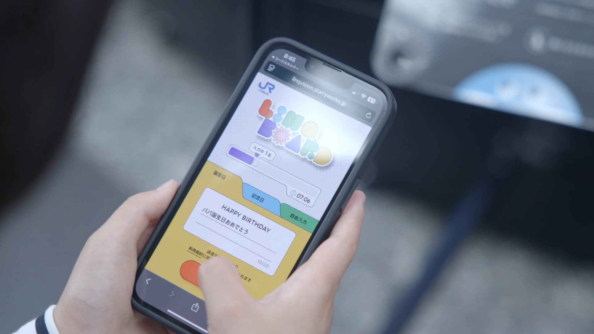 JR大阪駅、JR京都駅、JR広島駅の三拠点に設置された球体ビジョン「LINQ VISION」に、スマートフォンからステッカーとしてメッセージを残せる、掲示板サイネージコンテンツを制作しました。 投稿された内容は3拠点で連動しているため、他拠点へのメッセージを送ることもできます。また、「Happy Birthday」と「Happy Anniversary」モードでは特別演出が発生し、すべてのステッカーのテキストが一定時間入力された内容に変化し、音楽とともにお祝いします。 公共の場に設置されたサイネージに投影されるユーザー生成コンテンツを安全に運用するために、AIを使った検閲システムを構築しました。